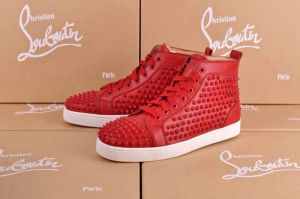 Super Max Perfect Christian Louboutin Louis Spikes Men's Flat Sneaker with Glossy Red Sole(with receipt)