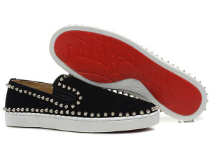 Super Max Perfect Christian Louboutin pik boat men's flat black nubuck(with receipt)
